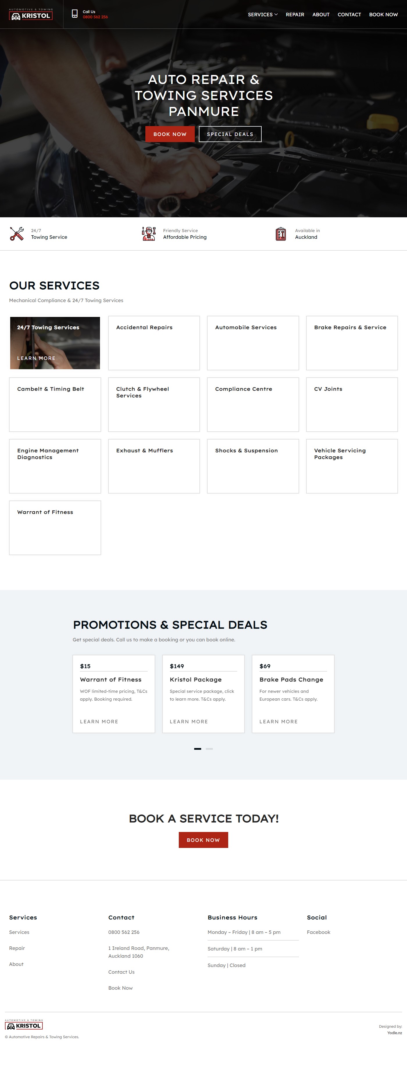 Auto repair in Panmure, we created an easy to use website including a booking system.